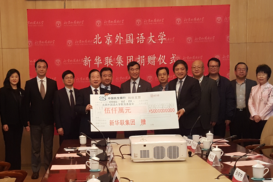 12月20日上午,新華聯(lián)集團(tuán)在北京外國語大學(xué)舉行捐贈(zèng)執(zhí)行儀式,向該校捐贈(zèng)5000萬元,推動(dòng)其教育事業(yè)的發(fā)展。據(jù)悉,新華聯(lián)集團(tuán)總裁傅軍還曾于2015年11月16日向毛澤東主席的母校湖南第一師范學(xué)院捐款1000萬元,用于設(shè)立新華聯(lián)獎(jiǎng)學(xué)金,并且自2015年開始每年幫助該校50名家庭困難且品學(xué)兼優(yōu)的大學(xué)生完成學(xué)業(yè)。