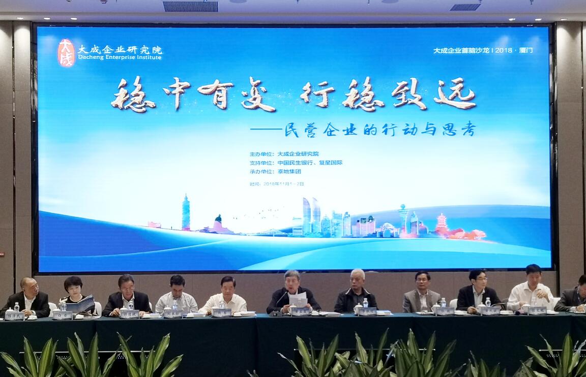 11月1日—2日,由大成企業(yè)研究院主辦的2018大成民營(yíng)企業(yè)首腦沙龍?jiān)趶B門泰地萬(wàn)豪酒店舉行。來(lái)自全國(guó)的近百位民營(yíng)企業(yè)家圍繞“穩(wěn)中有變,行穩(wěn)致遠(yuǎn),民營(yíng)企業(yè)的行動(dòng)與思考”這一主題探討交流了新形勢(shì)下民營(yíng)經(jīng)濟(jì)發(fā)展之路。傅軍總裁應(yīng)邀出席本次沙龍,并作為企業(yè)家代表作了重點(diǎn)發(fā)言。